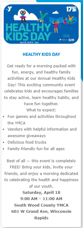 We are pleased to post community event information here for parents and interested community members to access. Board policy guidelines will be followed when considering whether approval is granted for information to be posted here. If you would like to have your event included, please send an email with your information to christine.wefel@wrps.net. Thank you!